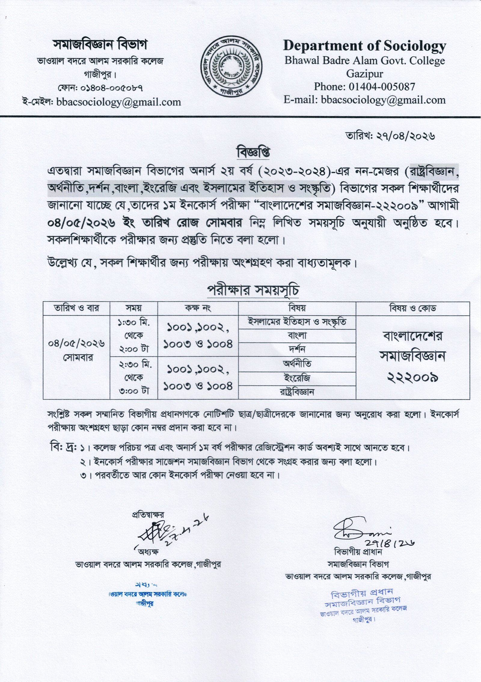 সমাজবিজ্ঞান বিভাগ
