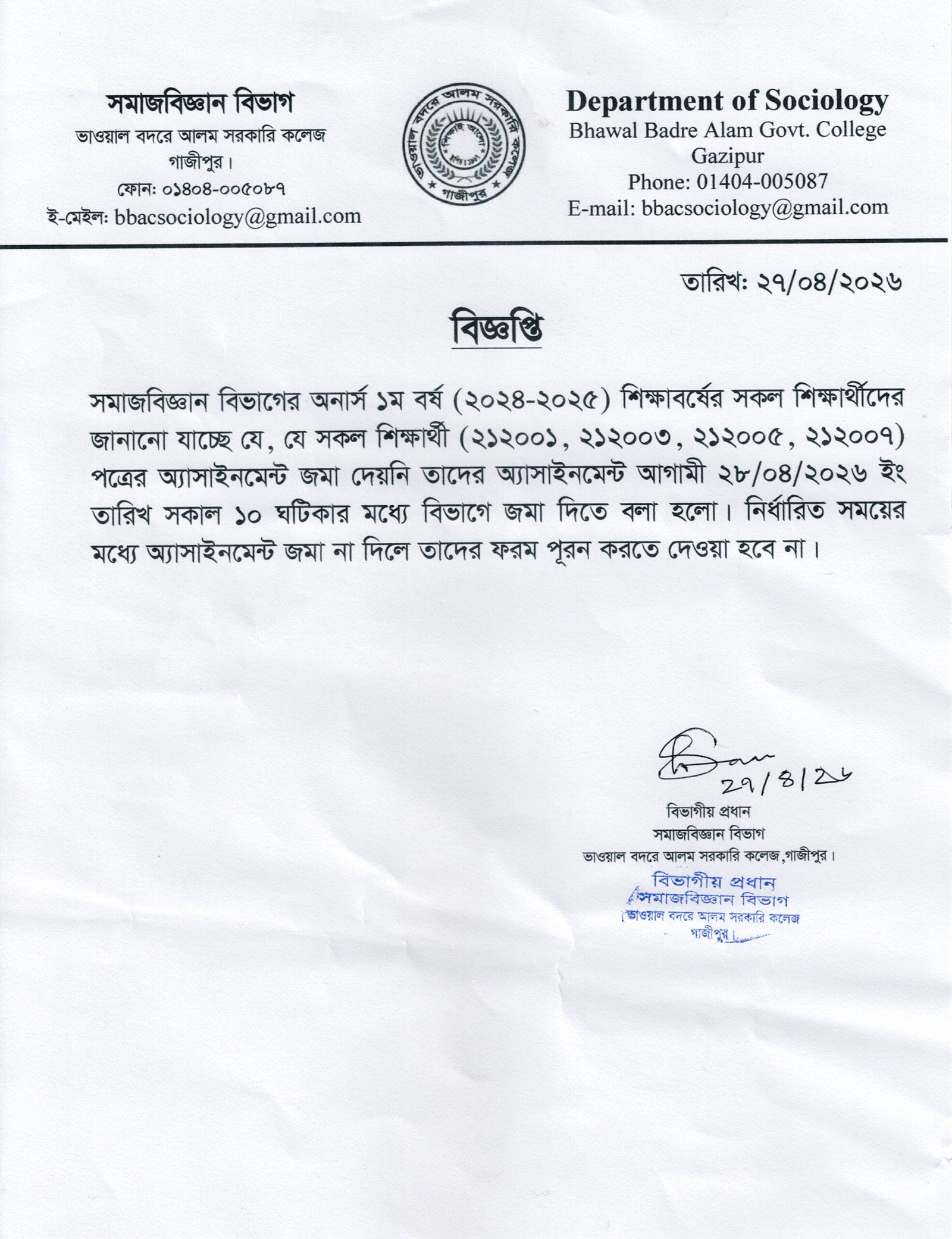 বাংলা বিভাগ